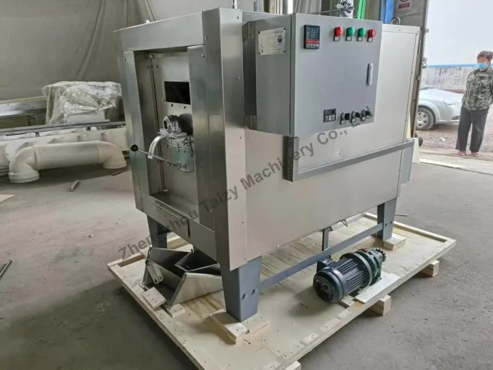 The peanut roasting machine is used to reduce the moisture content of peanuts and enhance their natural flavor. The machine uses electric heating, fuel oil, natural gas, or coal as its heat source. It features automatic temperature control and settings.